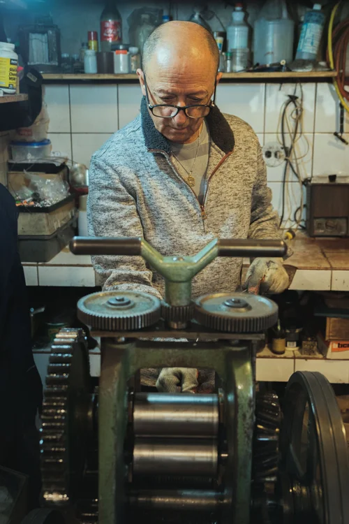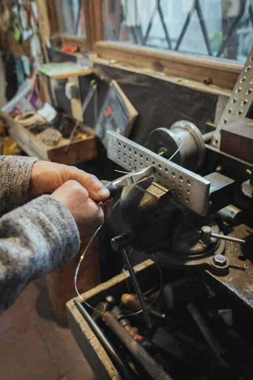 The technique begins by melting silver which is then shaped it into elongated bars. The bar is slowly passed through a series of holes, transforming it into long and thin strips of metal, eventually becoming a silver thread. Flavio explained that this is a lengthy manual process that demands patience, delicateness and consecration. Manipulating silver in such a way, creates a silk like thread ready to be twisted and shaped into the filigrana jewellery. Threads are curled up, twisted, cut and squeezed into various shapes creating numerous designs such as the dormilonas, campanarias and canastas. Many of those designs are traditionally worn by local indigenous groups like the Saraguros.