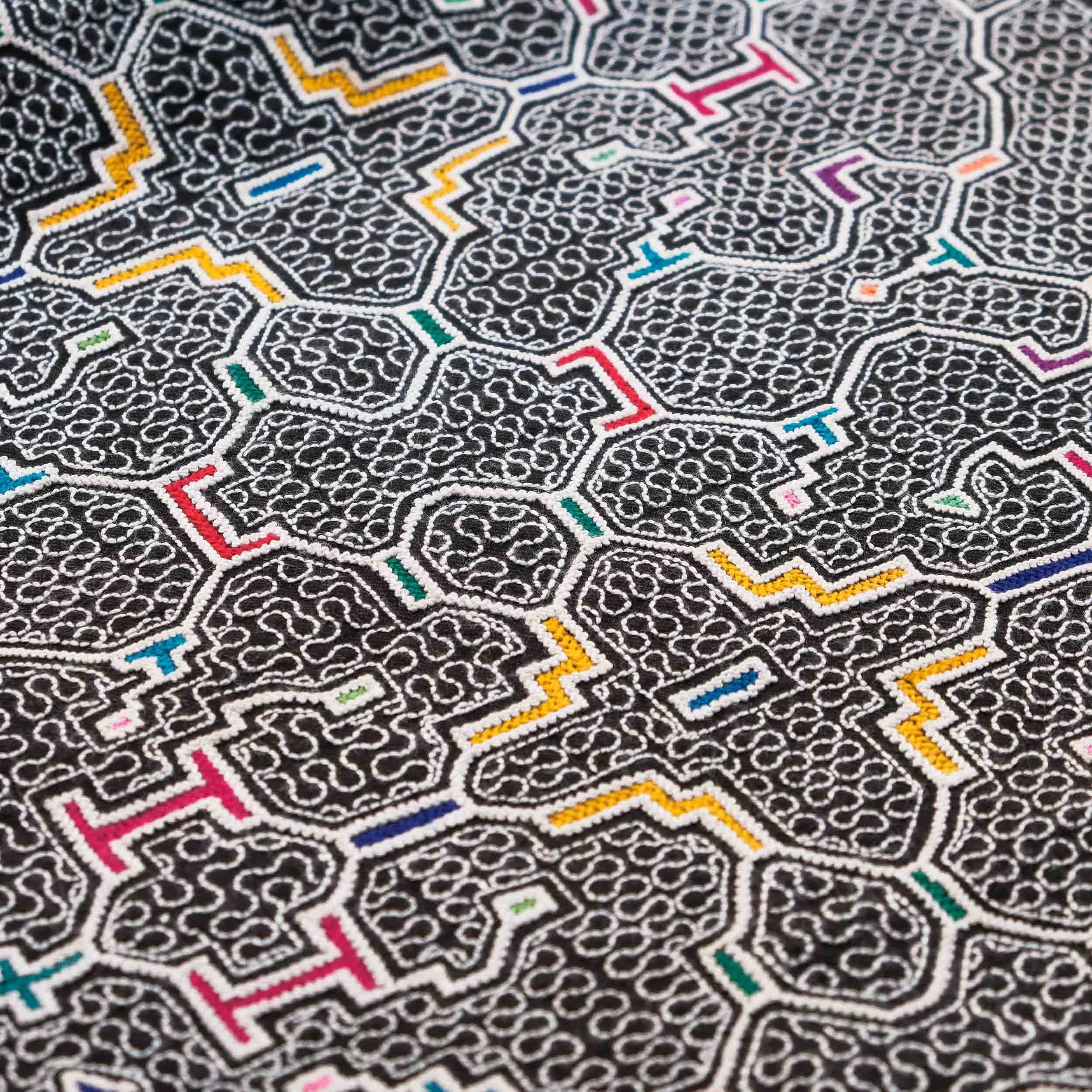 Kenes are multi-layered embroidered textiles composed of fractal motifs that are exclusively produced by women. These complex motifs are revealed to the individual as visions during healing ceremonies. The Shipibo believe that within each person lies a vibrational pattern that maps out an energetic pathway. Healing ceremonies are performed in order to realign these pathways that are ultimately represented within the Kenes.