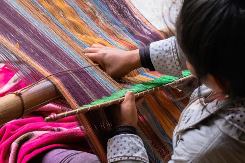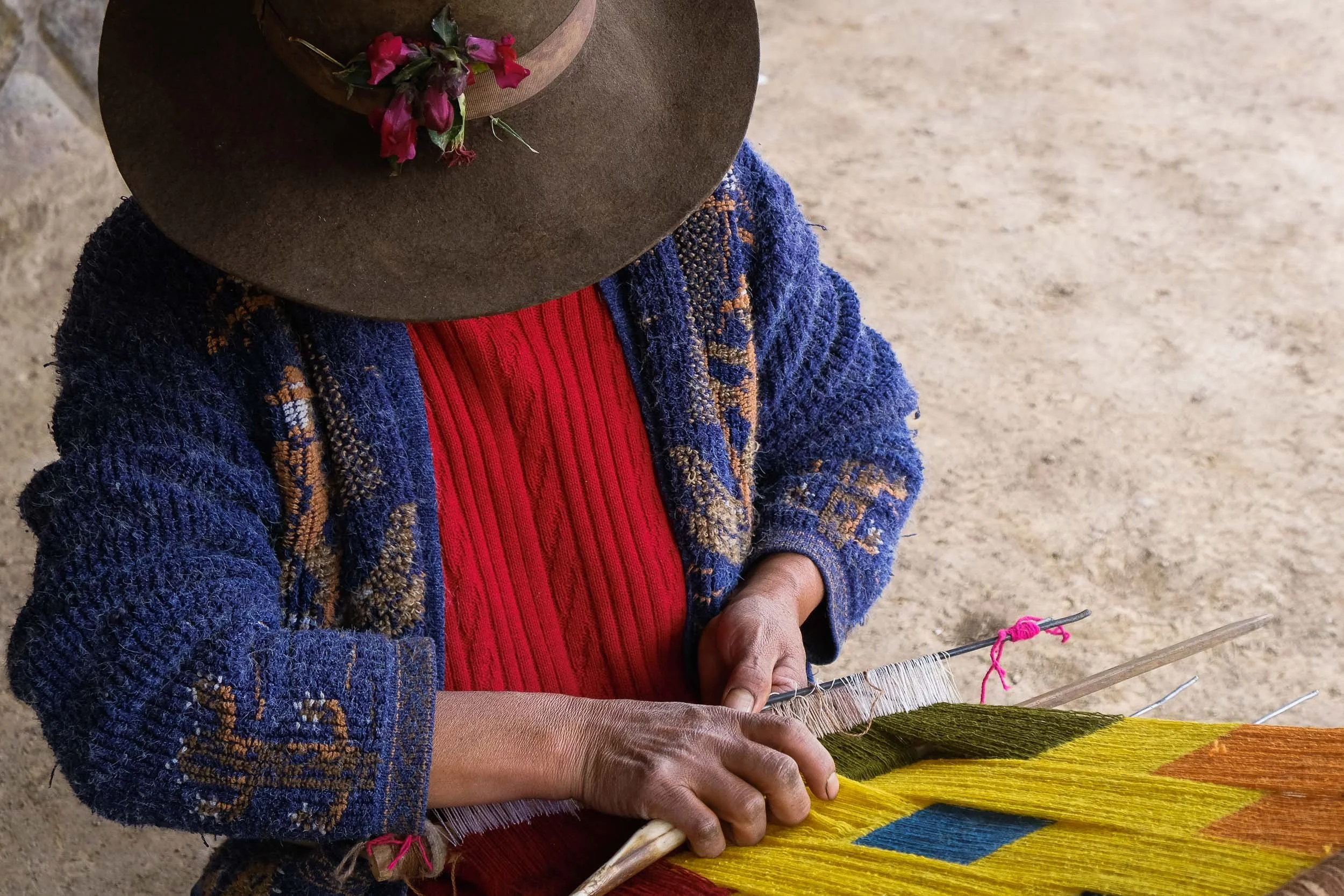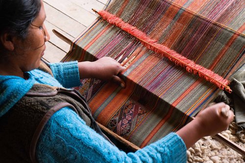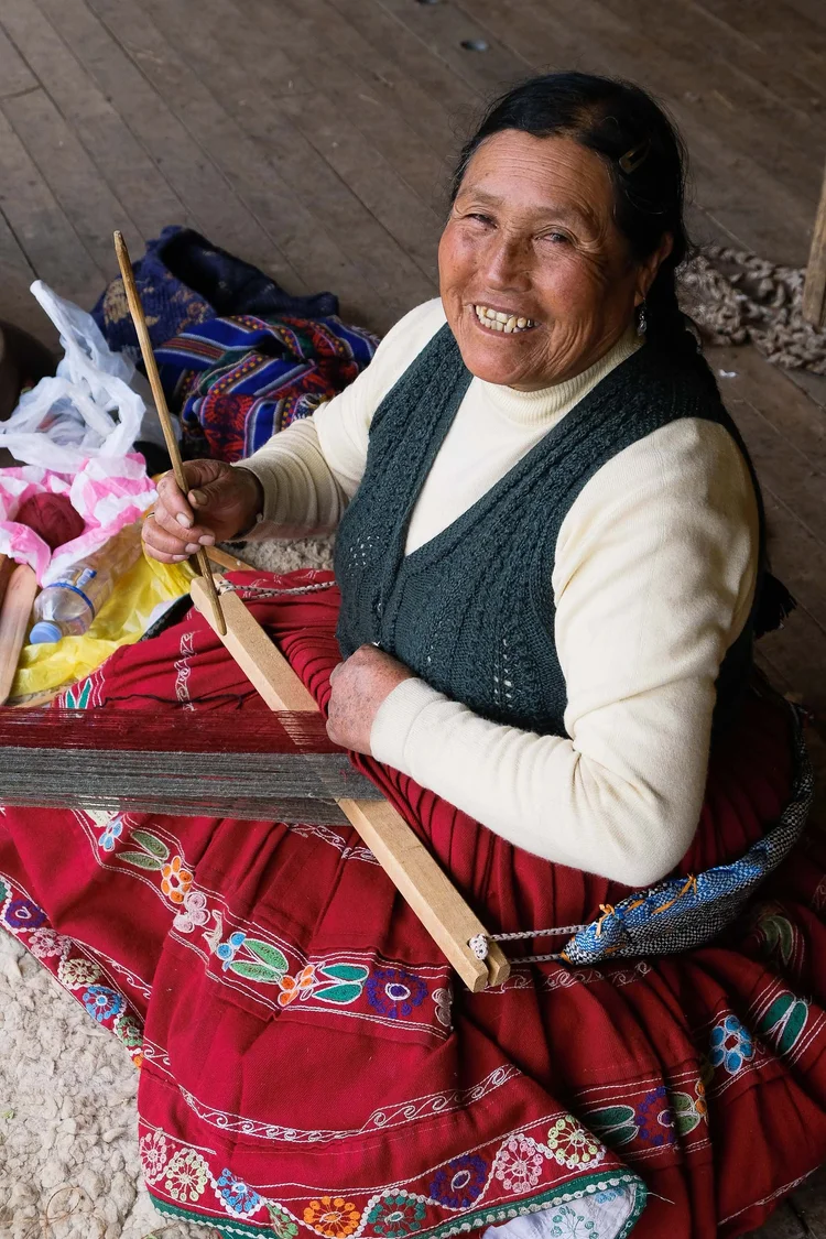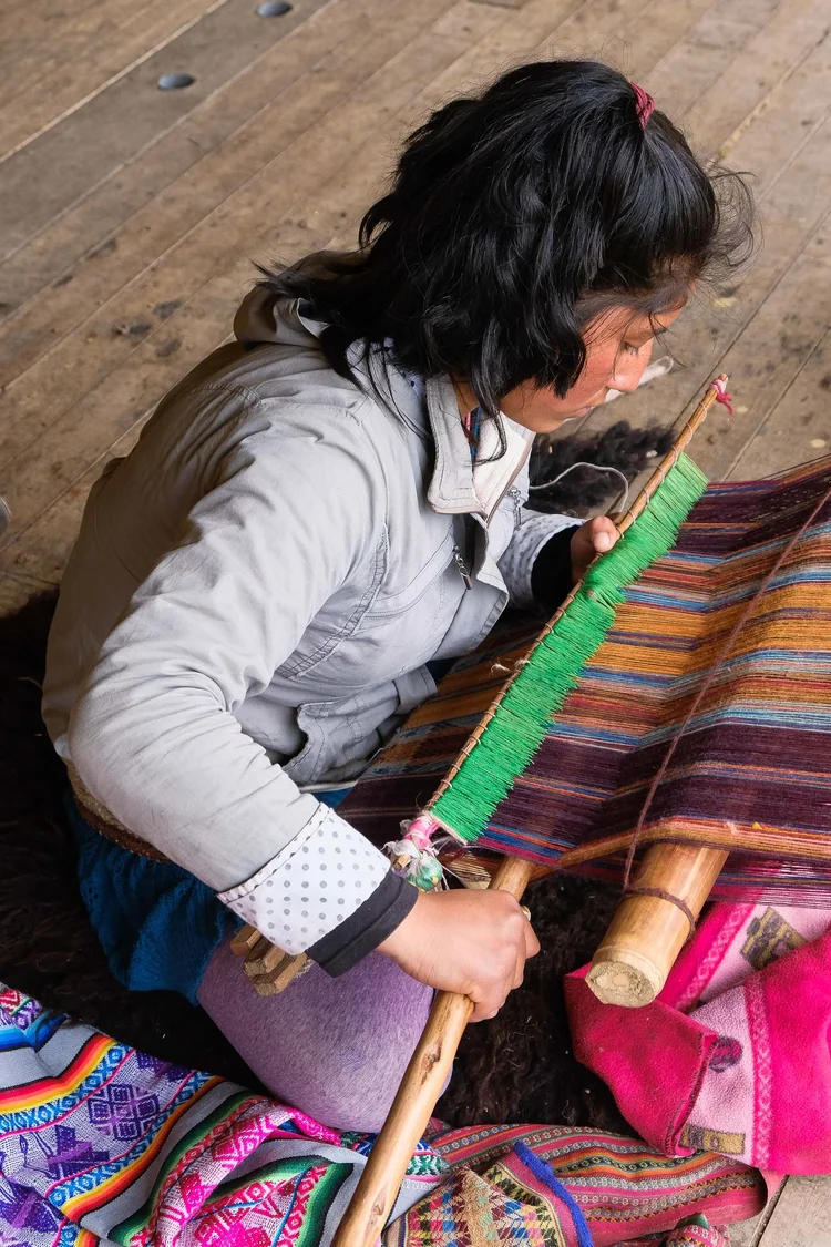 Situated within a mountainous crossroads region of Cusco, at an altitude of 3.570m, lies the small town of Pitumarca. As the main town of the area, Pitumarca has always been a stopping point for travellers and traders. The region has been greatly influenced by the techniques and practices of many passing cultures, through local people adopting and integrating different methods and processes, resulting in the development of unique and highly complex designs.