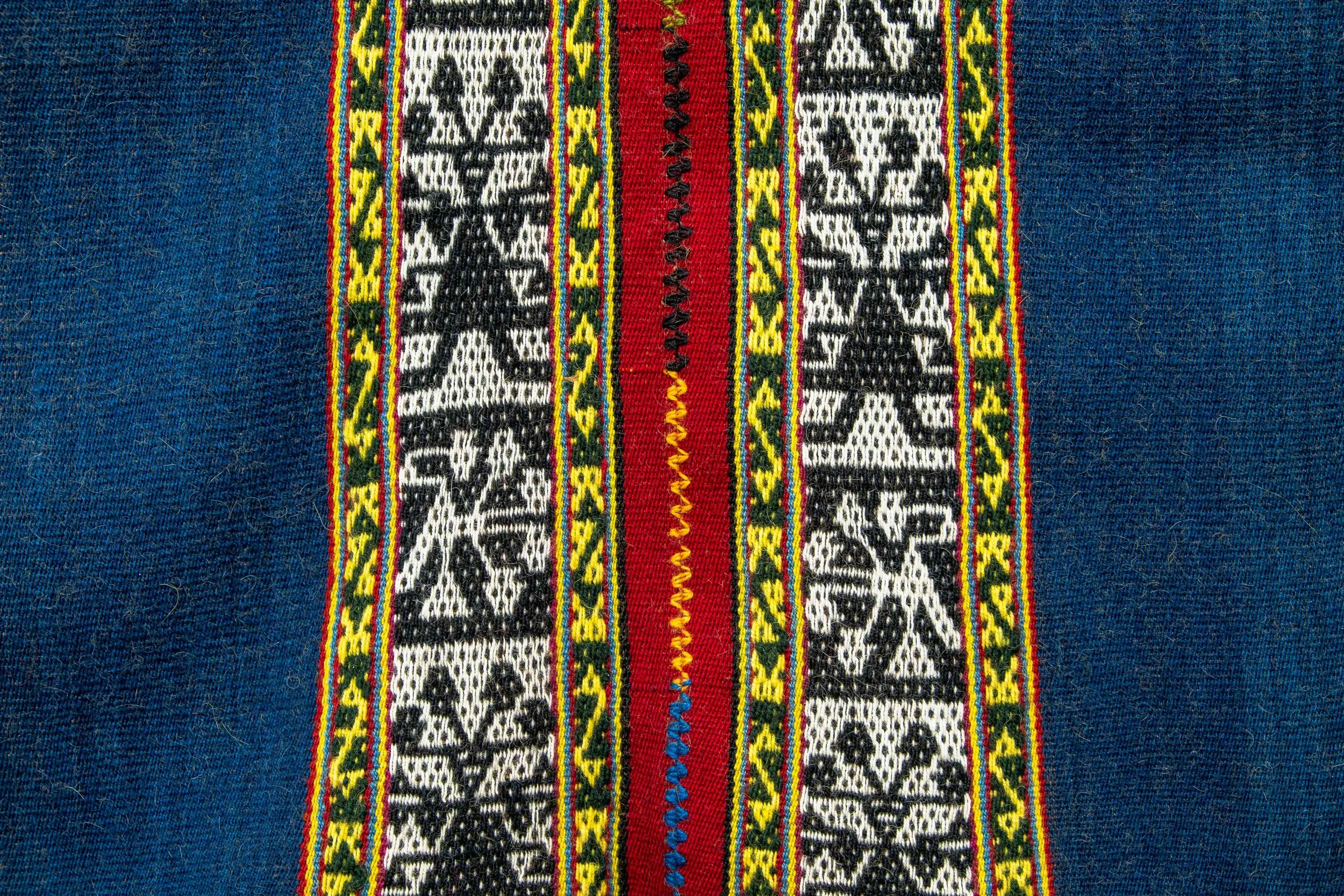 An example of such excellence is the ticlla design, which simulates double cloth. It is a unique and historical technique that can be traced back to two thousand years. The design requires meticulous planning and execution and clearly demonstrates the technical and artistic ability of the local master weavers. Woven textile practices of the Peruvian Andes, are valued and treasured as an inseparable part of all men and women of the region.