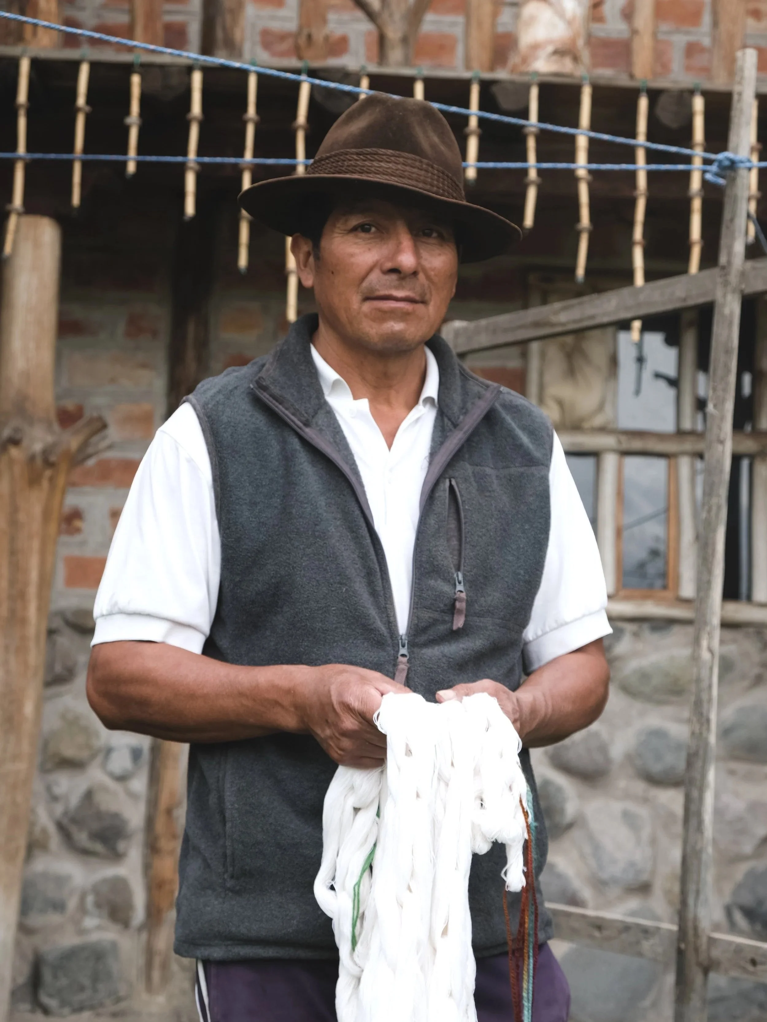 In Wasalata, a small settlement right next to the river Pachanlica, we were hosted by Jose Ignasio Caisabanda. A tapestry weaver and a skillful carpenter specialising in wooden constructions. Jose started weaving as a child learning the craft from his father who travelled to Quito as a young apprentice. He explained that tapestry making is relatively a new art form for the Salasacas. Handwoven textiles like the poncho, woven in honour of the condor are more representative pieces of their culture as well as the traditional felted white hat, worn in admiration of the moon. The women of salasaca can be seen going about their business while hand spinning wool which is exclusively used for weaving ponchos and traditional clothing.