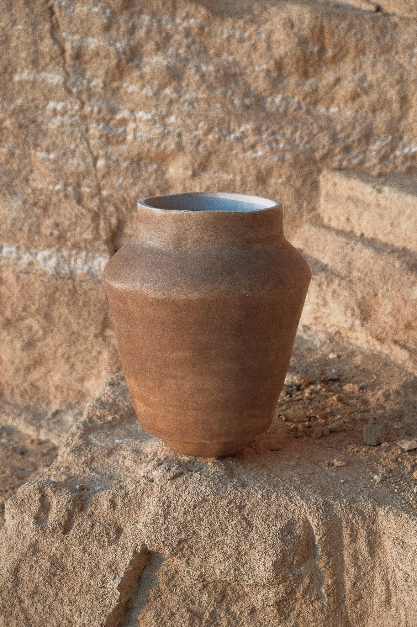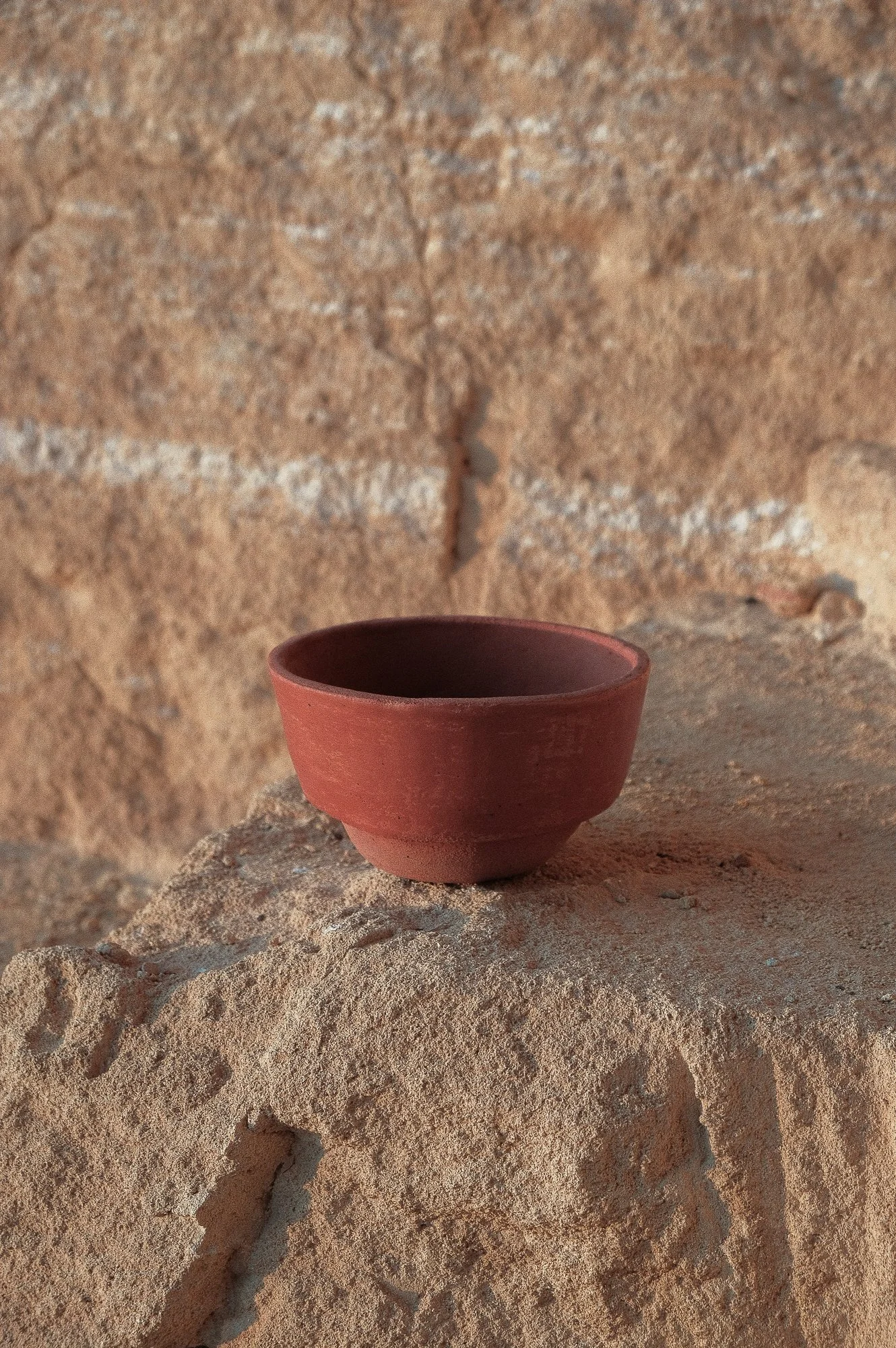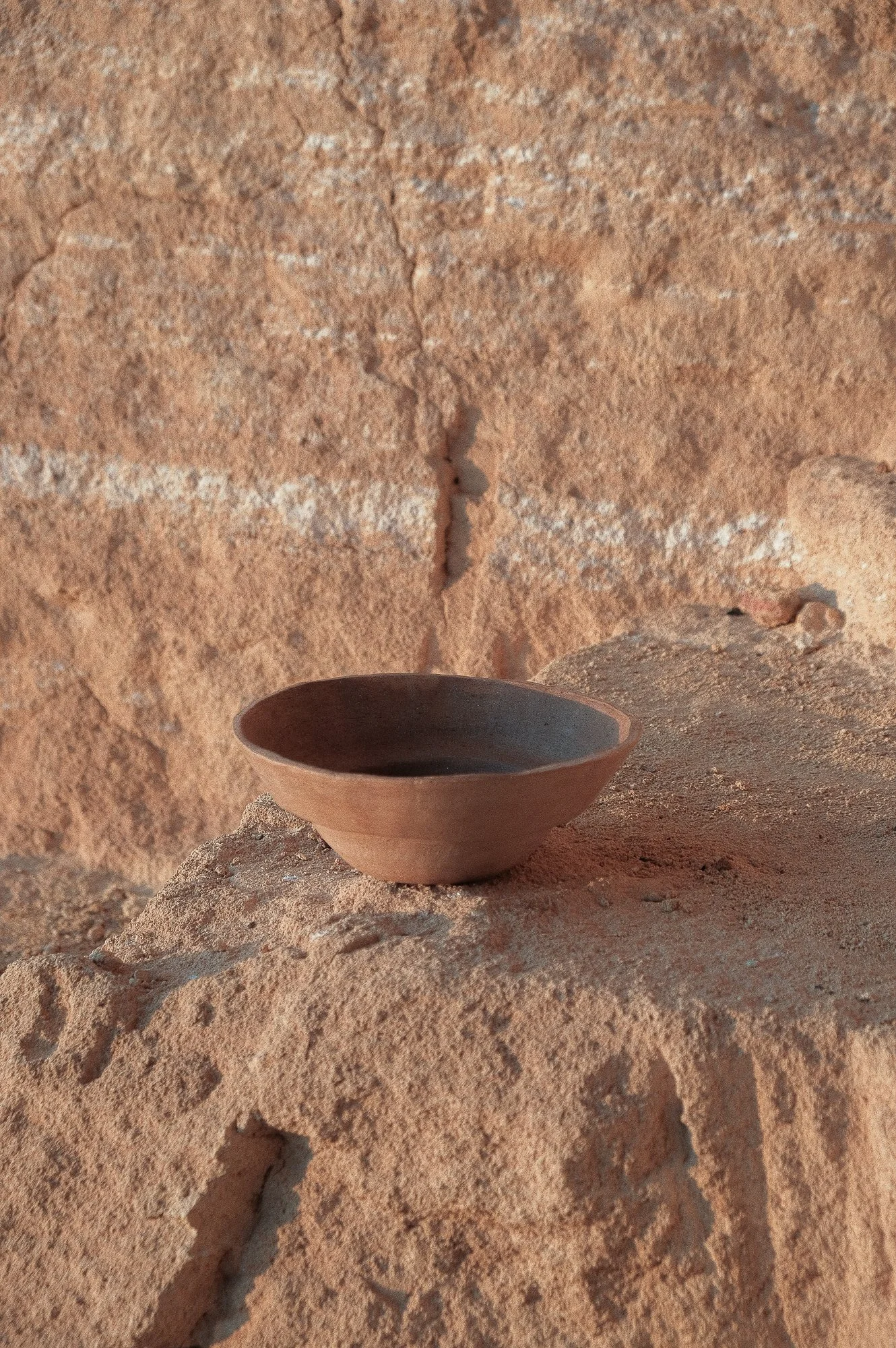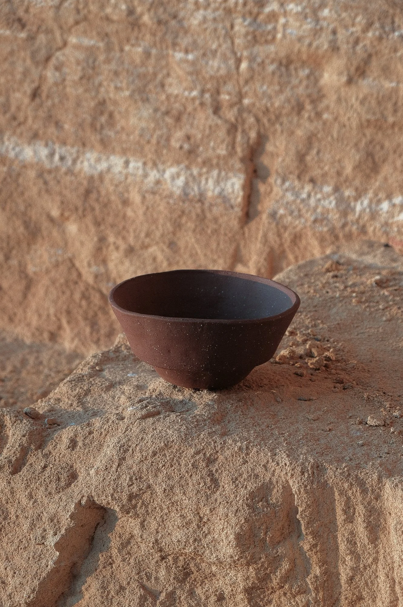 This collection centres on the natural porosity of wild clay, approaching it as an active quality rather than a limitation. New forms were developed to work with this openness, allowing the material to absorb, breathe, and respond to use. The shapes are designed to support these characteristics, keeping the structure of the clay present and readable.