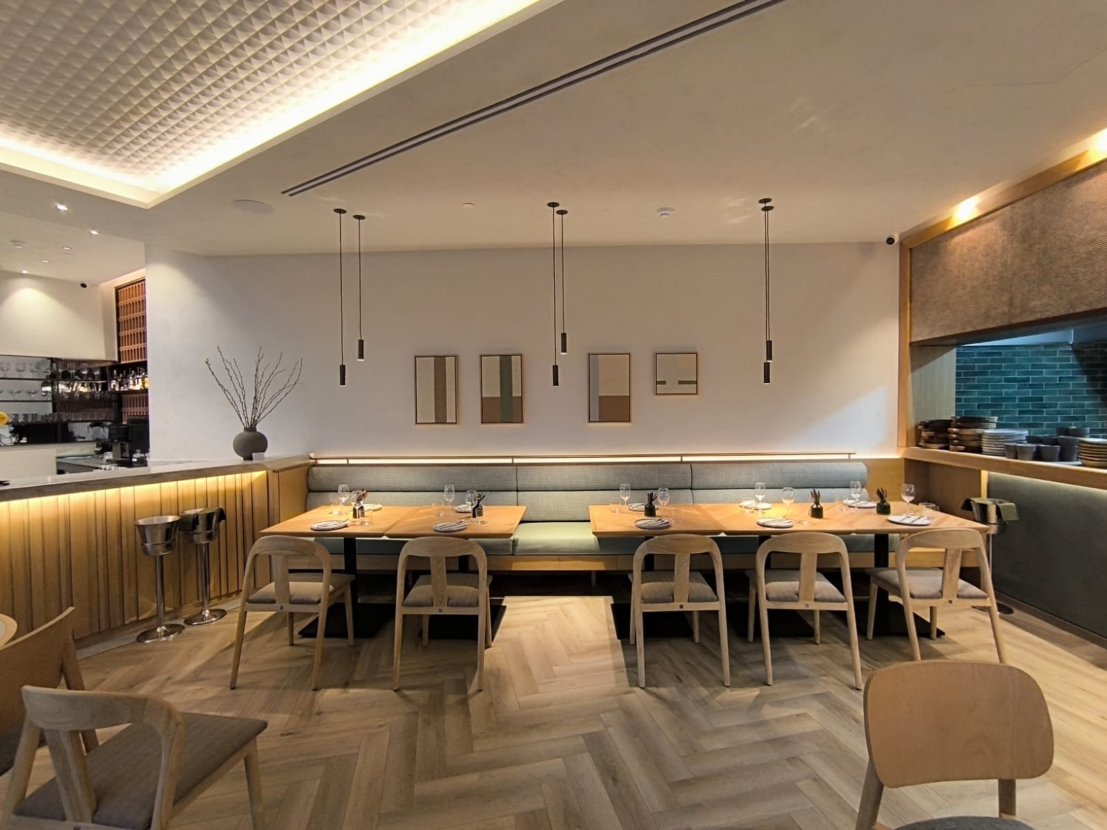 Woven interlace designs bridge the gap between traditional craftsmanship and contemporary design, making the space feel both timeless and modern. The interplay of light and shadow on the patterns further accentuates the geometric nature of the designs, embellishing the space with tactile richness.